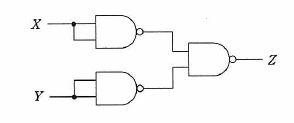 NAND素子を用いた次の組合せ回路の出力Z を表す式はどれか。 ここで、論理式中の“・”は論理積、“+”は論理和、“X ”はX の否定を表す。