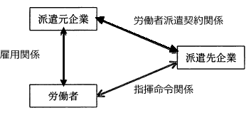 派遣労働者、派遣元事業主、派遣先事業主との間には、次の関係がある。