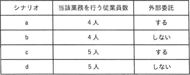 | ア | × | シナリオa(従業員4人+外部委託あり)