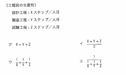 工程別の生産性が次のとき、全体の生産性を表す式はどれか。